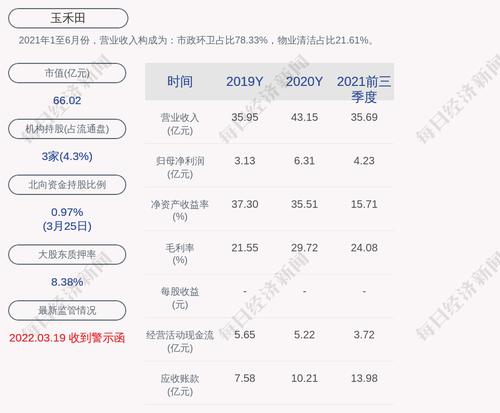 每经AI快讯,玉禾田(SZ 300815,收盘价:23.85元)3月28日晚间发布年度业绩报告称,2021年营业收入约48.34亿元,同比增加12.01%;归属于上市公司股东的净利润盈利约4.73亿元,同比减少25.12%;基本每股收益盈利1.71元,同比减少26.61%。分配方案为:拟每10股派发现金红利2.56元(含税)、不送红股、以资本公积金向全体股东每10股转增2股。