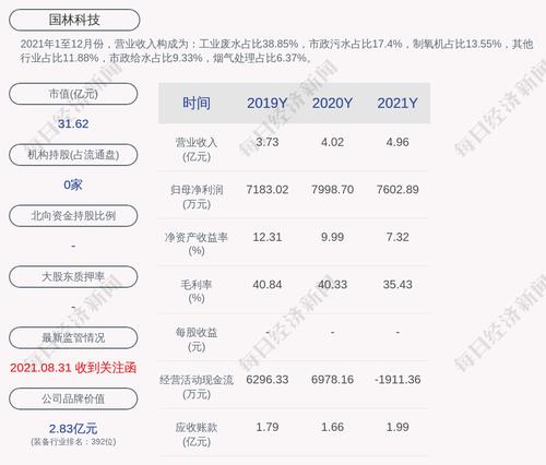 2021年1至12月份,国林科技的营业收入构成为:工业废水占比38.85%,市政污水占比17.4%,制氧机占比13.55%,其他行业占比11.88%,市政给水占比9.33%,烟气处理占比6.37%。