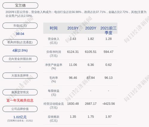 2. 根据各大券商对宝兰德净利润的预测,宝兰德2022年一季度预测净利润平均值为3670.25万元。宝兰德去年同期净利润为269.17万元。