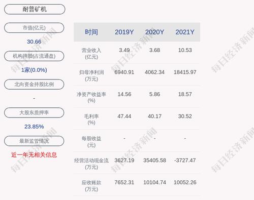 每经AI快讯,耐普矿机(SZ 300818,收盘价:43.8元)3月28日晚间发布年度业绩报告称,2021年营业收入约10.53亿元,同比增加186.03%;归属于上市公司股东的净利润盈利约1.84亿元,同比增加353.33%;基本每股收益盈利2.65元,同比增加334.43%。分配方案为:不分红、不送红股、不转增。