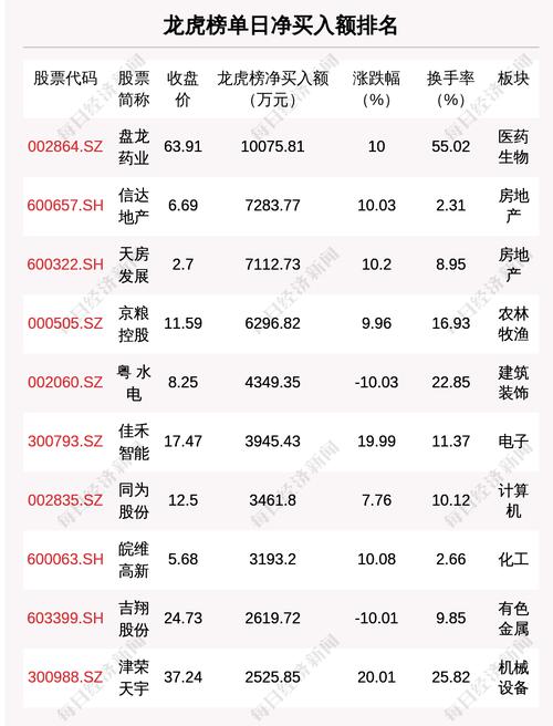 2丨整点投资|龙虎榜:盘龙药业单日净买入额最多,涉及机构专用席位的个股有20只