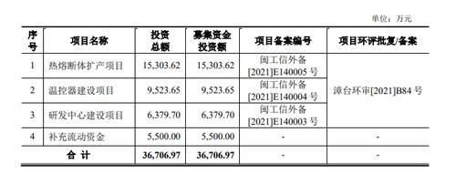 但在募集资金投入方面,温控器是雅宝电子募资投入的重要部分。本次IPO,雅宝电子拟募资3.67亿,其中9523.65万元用于温控器建设项目。其余用于还是雅宝电子传统的热熔断体业务。