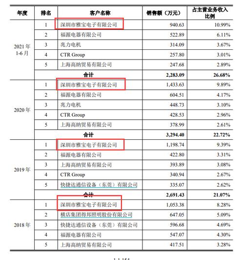 雅宝电子报告期内前五大客户情况 图片来源:雅宝电子招股书截图