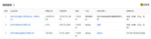孟宪生曾全资持股深圳市雅宝益通电子有限公司 图片来源:启信宝截图