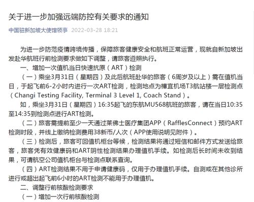 为进一步防范疫情跨境传播,保障旅客健康安全和航班正常运营,现就自新加坡出发赴华航班行前检测要求做如下调整,请旅客遵照执行。