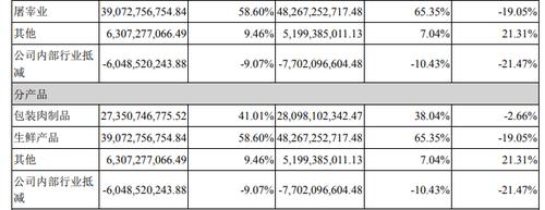 分产品看,包装肉制品营业收入273.51亿元,同比下降2.66%;生鲜产品营业收入390.73亿元,同比下降19.05%;其他产品营业收入63.07亿元,同比增长21.31%。