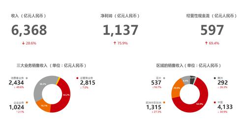 按区域划分,中国市场2021年销售收入4133亿元,同比下降30.9%;欧洲中东非洲地区销售收入1315亿元,同比下降27.3%;亚太地区销售收入537亿元,同比下降16.7%;美洲地区销售收入292亿元,同比下降26.3%。