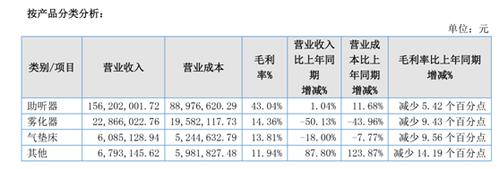 分单项产品看,锦好医疗2021年度的助听器实现营业收入约1.56亿元,同比增长1.04%;雾化器实现营业收入约0.23亿元,同比下降50.13%;气垫床实现营业收入约0.06亿元,同比下降18%;其他业务实现营业收入约0.07亿元,同比增长87.8%。