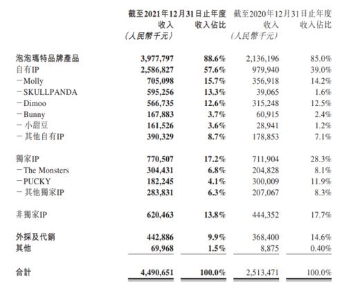 其中,已经15周岁的MOLLY依旧最具卖点,2021年全年实现收入约7.05亿元,占总营收比例约为15.7%,同比增长97.6%。
