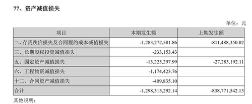 从资产减值损失的明细科目上看,主要是由存货跌价损失及合同履约成本减值损失所导致,2021年度该明细科目发生减值约12.8亿元。