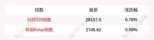 每经AI快讯:北京时间3月29日08:00,日经225指数开盘上涨213.61点,涨幅为0.76%,报28157.5点;韩国KOSPI指数开盘上涨16.06点,涨幅为0.59%,报2745.62点。