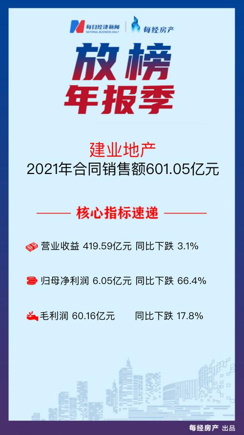 建业地产2021年度核心业务毛利约60.16亿元,较2020年下跌约17.8%;权益持有人应占溢利约6.05亿元,较2020年下跌约66.4%;溢利约12.53亿元,较2020年下跌约40.4%。