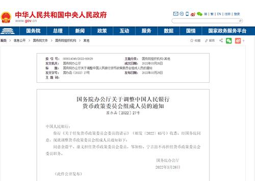 据中国政府网,国务院办公厅29日发布关于调整中国人民银行货币政策委员会组成人员的通知。
