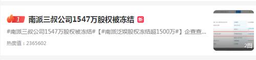 3月29日,一条“南派三叔公司1547万股权被冻结”的词条冲上热搜第一,引发关注。