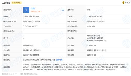 公开资料显示,杭州量子泛娱影视文化传媒股份有限公司此前的名称为南派泛娱股份有限公司。该公司成立于2014年3月,董事长、法定代表人为徐磊(南派三叔),注册资本约1.26亿元,经营范围包括企业管理咨询、文艺创作、电视剧制作等。
