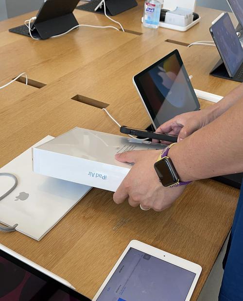 Z哥去苹果店的目的,是买苹果3月份最新发布的iPad Air,因为几年前买的iPad mini运行有些吃力了。另外,原来的设备以旧换新,可以抵扣1050元,还是比较划算。