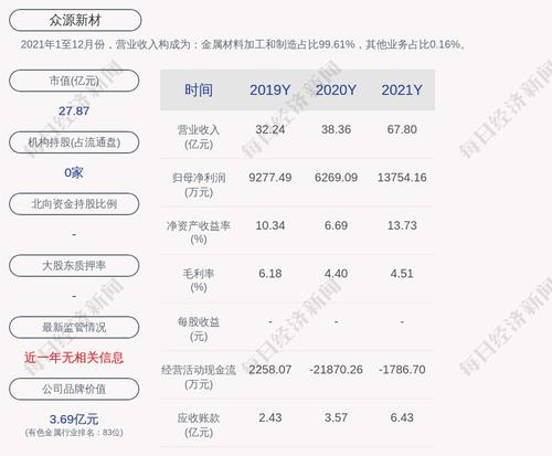 2021年1至12月份,众源新材的营业收入构成为:金属材料加工和制造占比99.61%,其他业务占比0.16%。