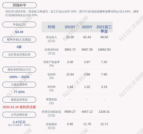 2021年1至6月份,西陇科学的营业收入构成为:化工行业占比97.23%,医疗行业(包括器械和诊断试剂)占比2.54%,服务行业(物业租金)占比0.23%。