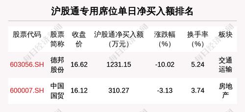 在龙虎榜中,涉及沪股通专用席位的个股有2只,德邦股份的沪股通专用席位净买入额最大,净买入1231.15万元。