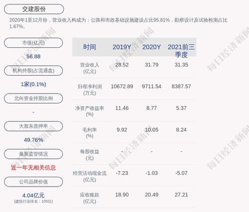 2020年1至12月份,交建股份的营业收入构成为:公路和市政基础设施建设占比95.81%,勘察设计及试验检测占比1.67%。