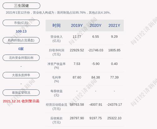 每经AI快讯,三生国健(SH 688336,收盘价:17.71元)3月29日晚间发布年度业绩报告称,2021年营业收入约9.29亿元,同比增加41.8%;归属于上市公司股东的净利润盈利约1806万元;基本每股收益盈利0.03元。不分红、不送红股、不转增。2020年同期营业收入约6.55亿元;归属于上市公司股东的净利润亏损约2.17亿元;基本每股收益亏损0.37元。