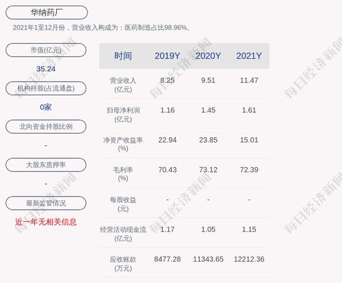 每经AI快讯,华纳药厂(SH 688799,收盘价:37.57元)3月29日晚间发布年度业绩报告称,2021年营业收入约11.47亿元,同比增加20.61%;归属于上市公司股东的净利润盈利约1.61亿元,同比增加10.85%;基本每股收益盈利2.01元,同比减少2.43%。不送红股、不转增。