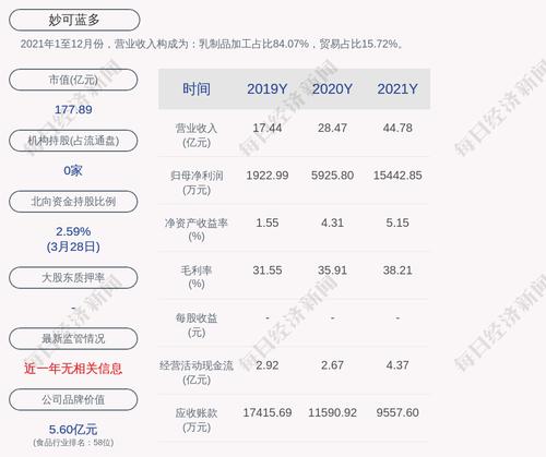1. 妙可蓝多近30日内北向资金持股量增加85.13万股,占流通股比例增加0.21%;