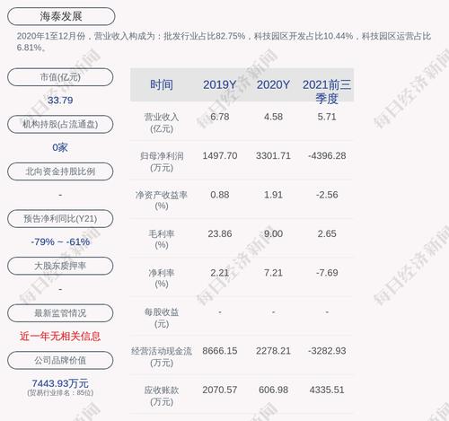 2. 海泰发展在近3个交易日上涨33.08%,所属房地产板块同期上涨0.59%,上证指数同期下跌1.43%。