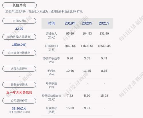 每经AI快讯,长虹华意(SZ 000404,收盘价:4.64元)3月29日晚间发布年度业绩报告称,2021年营业收入约131.99亿元,同比增加26.27%;归属于上市公司股东的净利润盈利约1.85亿元,同比增加59.81%;基本每股收益盈利0.2664元,同比增加59.81%。拟每10股派发现金红利1.5元(含税)、不送红股、不转增。