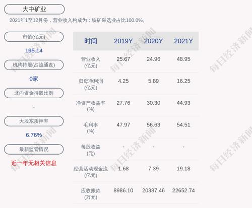 2021年1至12月份,大中矿业的营业收入构成为:铁矿采选业占比100.0%。