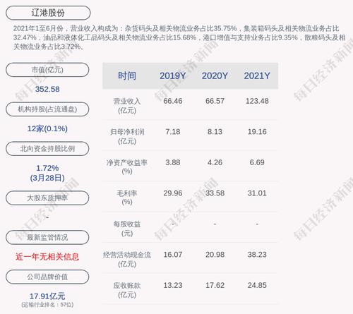 2021年1至6月份,辽港股份的营业收入构成为:杂货码头及相关物流业务占比35.75%,集装箱码头及相关物流业务占比32.47%,油品和液体化工品码头及相关物流业务占比15.68%,港口增值与支持业务占比9.35%,散粮码头及相关物流业务占比3.72%。