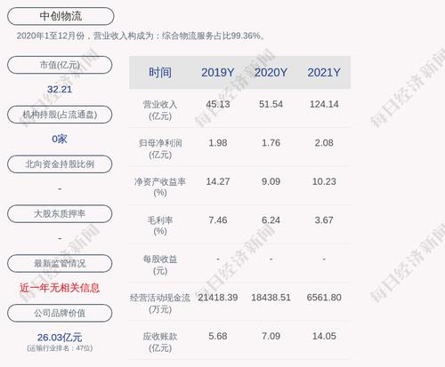 每经AI快讯,中创物流(SH 603967,收盘价:12.08元)3月29日晚间发布公告称,截至本公告披露日,公司对控股子公司提供的担保总额为2.5亿元,占公司最近一期经审计净资产的比例为11.34%。