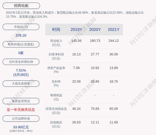 2021年1至12月份,招商轮船的营业收入构成为:散货船运输占比46.58%,集装箱运输占比22.58%,油轮运输占比15.75%,滚装船运输占比6.3%。