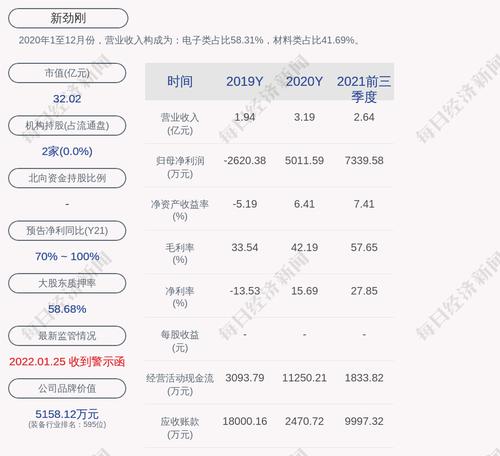 2020年1至12月份,新劲刚的营业收入构成为:电子类占比58.31%,材料类占比41.69%。