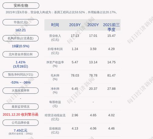 2021年1至6月份,安科生物的营业收入构成为:基因工程药占比53.52%,外用贴膏占比20.17%。