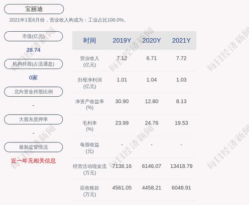 2021年1至6月份,宝丽迪的营业收入构成为:工业占比100.0%。