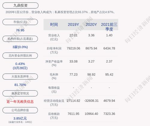 1. 九鼎投资近30日内北向资金持股量减少7600.0股,占流通股比例减少0.00%;