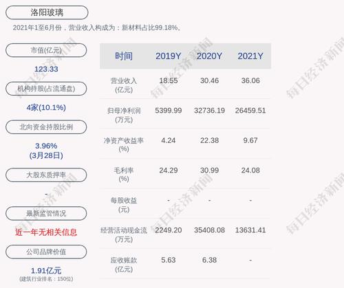 每经AI快讯,洛阳玻璃(SH 600876,收盘价:24.37元)3月29日晚间发布年度业绩报告称,2021年营业收入约36.06亿元,同比增加6.64%;归属于上市公司股东的净利润盈利约2.65亿元,同比减少29.04%;基本每股收益盈利0.46元,同比减少32.35%。公司不进行利润分配、公积金转增股本。