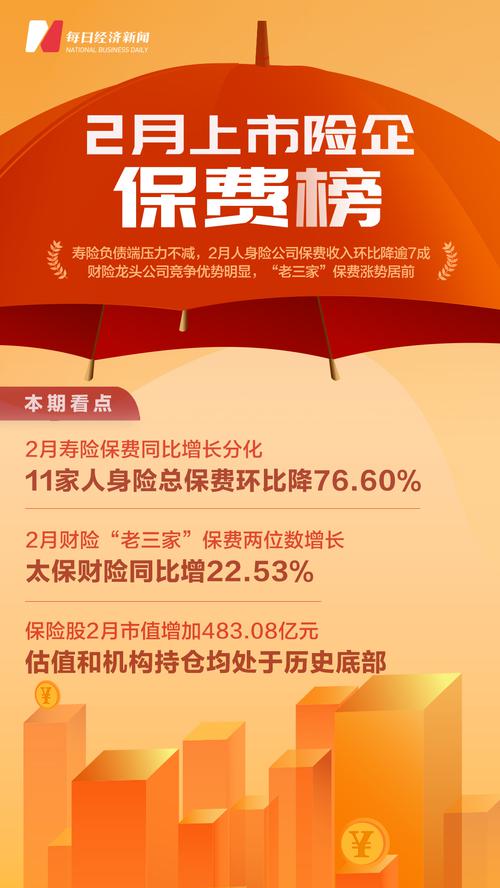具体来看,11家人身险公司2月保费增长分化。国华人寿、人保健康险、太平养老险保费分别上升48.37%、39.40%、30.32%。平安养老险、平安寿险、中国人寿2月保费分别下降21.68%、4.70%、3.13%,在该榜单中位列后三位。