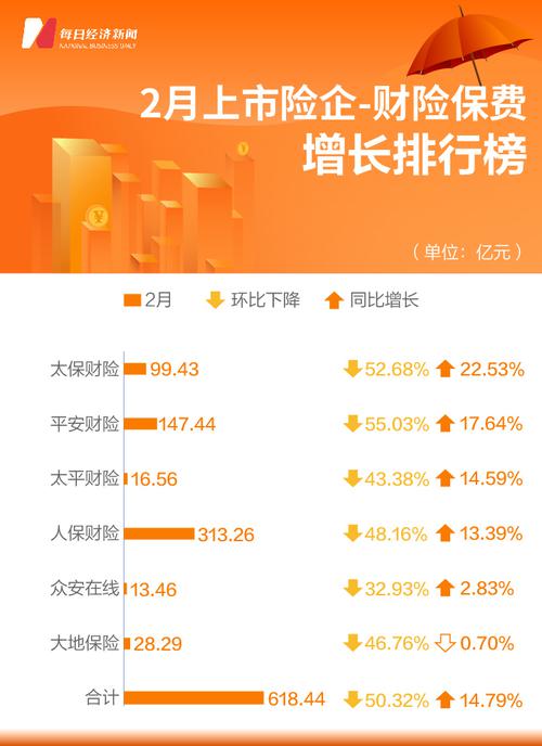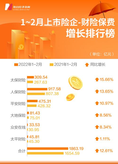 纳入榜单中的6家财险公司包括平安财险、人保财险、太保产险、太平财险、众安在线、大地保险。2022年1-2月,6家财险公司合计实现保费收入1863.19亿元,同比增长12.61%,上市财险公司合计保费保持两位数正增长。
