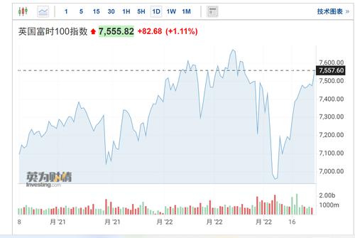 英国富时100指数涨82.68点,涨幅1.11%。