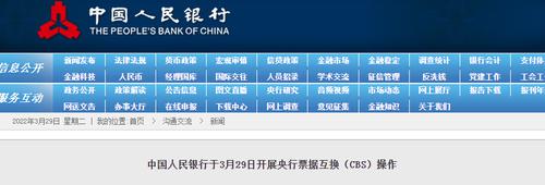 据央行官网消息,中国人民银行于3月29日开展央行票据互换(CBS)操作。
