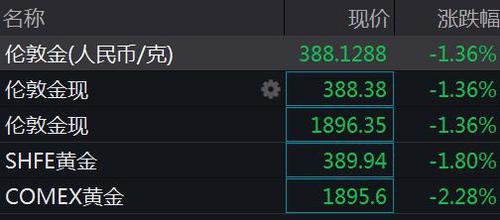 金价方面,现货黄金短线下挫逾1%,现报1896.35美元/盎司。
