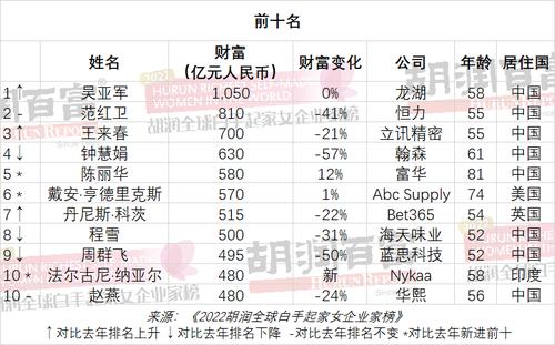 3月29日,胡润研究院发布《2022胡润全球白手起家女企业家榜》,列出全球白手起家的女性十亿美金企业家。其中,其中,中国不仅包揽前五名,还在总数上拥有世界上三分之二的最成功女性企业家,是位居第二的美国三倍多。
