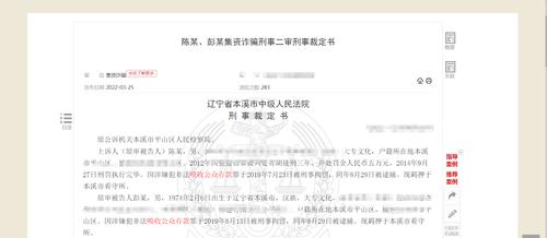 近日,中国裁判文书网官网披露的一则刑事裁定书显示,陈某以公司名义,并谎称其公司投资庄园具有高额利润,以年利率11%至15%的高额回报为诱饵,专门引诱中老年客户投资。最终,陈某等人共向465名被害人收取投资款2552.19万元,以借新还旧方式归还本金714.95万元,还息200多万元,造成380名被害人损失1633.8万元。然而,法网恢恢疏而不漏!彭某、陈某因涉嫌犯罪被法院判处有期徒刑。