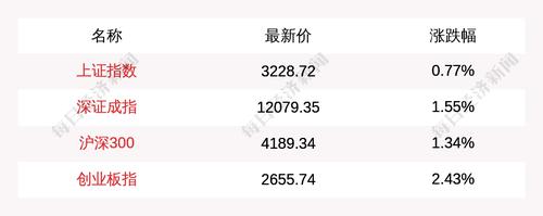 截至北京时间10:30,上证指数报3228.72点,涨0.77%,深证成指报12079.35点,涨1.55%,沪深300报4189.34点,涨1.34%,创业板指报2655.74点,涨2.43%