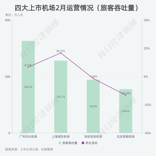 广州白云机场与上海浦东机场虽然起降架次有所下降,但旅客吞吐量连续两月上升。尤其是上海浦东机场,旅客吞吐量环比上升20.72%,达到255.73万人次。广州白云机场旅客吞吐量则环比上升8.13%。