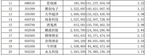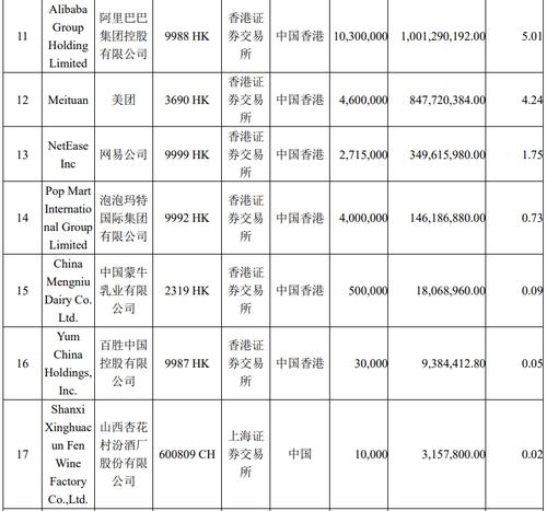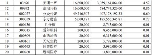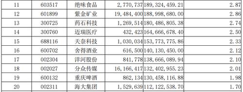 同样来看其隐形重仓股,第十一位至第二十位的持股情况如下: