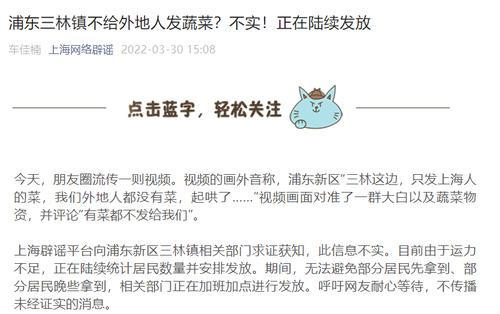 浦东三林镇不给外地人发蔬菜?不实!正在陆续发放