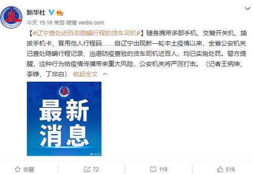辽宁查处隐瞒行程的货车司机近百人